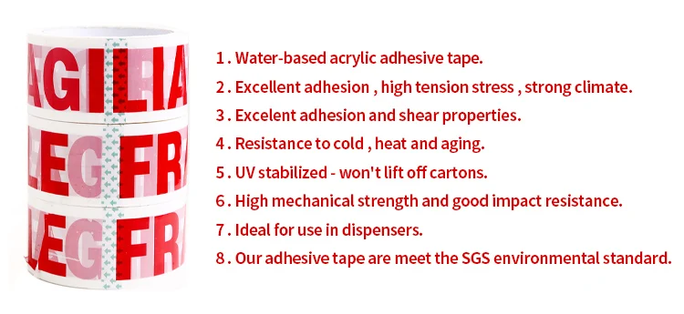 Oavsett om du skickar känsliga föremål eller bara vill lägga till en professionell look på dina paket, är detta Printed Packaging Tape den ideala valet. Det Svart spindel BOpp materialet är hållbart och rivbeständigt, vilket säkerställer att dina paket ankommer säkert till destinationen. Fragil varning som är tryckt på bandet varnar också hanterare att hantera ditt paket med omsorg, vilket minskar risken för skada under transporten.